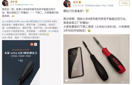 这次取消发售的行为让网友吐槽“小米没有契约精神”、玩“耍猴”游戏,又一次引发了对小米“饥饿营销”的质疑,“吓得”雷军转发了小米商城售卖米家螺丝刀的微博并立Flag:“假如小米9首月供货不足百万台,大家不用催了,我就去工厂拧螺丝!”